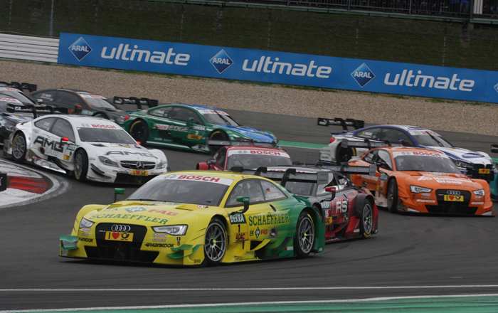 Marco Wittmann fährt vierten Saisonsieg ein Paul di Resta bester Mercedes-Mann auf Platz vier Vom 15. bis 18. August stand der siebte Lauf der DTM auf dem Progamm. Nach dem letzten Rennen vor vierzehn Tagen in Österreich auf dem Red Bull Ring ging es nun wieder in heimische Gefilde und zwar in die Eifel zum Nürburgring. An diesem Wochenende wird die Kurzanbindung gefahren. Als Tabellenführer reist Marco Wittmann (BMW Team RMG) mit 95 Punkte hierher an, gefolgt von Mattias Ekström (Audi Sport Team Abt Sportsline) mit 56 und Bruno Spengler (BMW Team Schnitzer) mit 42 Punkte. Christian Vietoris der beste Mercedes-Pilot, er liegt in der Meisterschaft auf Rang acht mit 33 Zähler, will hier alles versuchen ein gutes Ergebnis einzufahren und damit viele Punkte zu sammeln, um in der Meisterschaft weiter nach vorne zu kommen. Die acht BMW M4 DTM werden in der Eifel mit Trauerflor antreten, da der Zwillinghsbruder von Charlie Lamm verstorben ist. Mit dem BMW Team Schnitzer hatte der Zwillingsbruder von Teamchef Charly Lamm in den vergangenen Jahrzehnten zahllose Erfolge gefeiert. In der DTM konnte BMW bisher neunmal auf dem Nürburgring siegen, zuletzt beim 40-jährigen Jubiläum der BMW M GmbH in der Comeback-Saison 2012. Damals gewann Bruno Spengler, der am kommenden Wochenende sein 100. DTM-Rennen bestreiten wird. ![]() Im vergangenen Jahr starteten in Augusto Farfus und Marco Wittmann zwei BMW Piloten aus der ersten Startreihe. Augusto Farfus schaffte als Zweiter im Rennen den Sprung auf das Podium. In diesem Jahr gehen die BMW Piloten nach vier Siegen in den bisherigen sechs Saisonrennen mit viel Rückenwind, aber auch mit entsprechend hohem Performance-Gewicht, in den siebten Lauf. Die BMW M4 DTM von Wittmann, Farfus und Spengler müssen die laut Reglement maximal möglichen zehn Kilogramm zuladen. Auch alle anderen BMW Rennwagen sind schwerer als die Autos der Konkurrenz. Für das Phoenix Racing Team ist es diesmal ein Heimspiel. Schließlich liegt der Firmensitz in Meuspath nur einen Steinwurf vom Fahrerlager entfernt. Ansonsten legen die DTM-Teams in einer Saison tausende von Kilometern zurück. Auch für die Piloten Timo Scheider und Mike Rockenfeller ist es ein Heimrennen. Phoenix Racing hat sich auf dem Nürburgring und besonders auf der Nordschleife einen großen Namen gemacht. Nach 2012 holte das Team in diesem Jahr den zweiten Sieg für Audi beim ADAC Zurich 24h-Rennen. In der DTM fehlt der Mannschaft aus Meuspath allerdings noch der Erfolg auf dem Nürburgring. Der soll der Firmenhistorie möglichst schnell hinzugefügt werden, vielleicht schon an diesem Wochenende. ![]() Ernst Moser(Teamchef Phoenix Racing): "Ein Heimrennen ist immer etwas ganz spezielles und da will man seine Sache natürlich besonders gut machen." Maxime Martin (BMW Team RMG): "Ich kenne den Nürburgring sehr gut aus dem GT-Sport. Natürlich sind GT-Rennen und die DTM zwei vollkommen verschiedene Kategorien. Deshalb muss ich mich an die speziellen Anforderungen anpassen und den Kurs gewissermaßen neu lernen. Darauf freue ich mich – denn ich liebe den Nürburgring einfach. Belgien ist nicht weit weg, und es werden einige Leute kommen, um mich anzufeuern." Martin Tomczyk (BMW Team Schnitzer): "Der Nürburgring ist eine großartige Strecke, eine der traditionsreichsten, die wir in Deutschland haben. Nach wie vor macht es besonders großen Spaß, dort zu starten. Ich bin in diesem Jahr bereits beim 24-Stunden-Rennen auf der Nordschleife gefahren. Jetzt geht es auch mit der DTM in die Eifel. Der Nürburgring ist einfach eine Institution und aus dem Kalender nicht wegzudenken." ![]() Am frühen Samstagmorgen von 8.00 Uhr bis 9.00 Uhr stand für die DTM-Piloten das erste freie Training auf dem Programm. Zunächst einmal wechselten in dieser einen Stunde die Positionen immer wieder. Am Schluss hatte sich dann Timo Glock (BMW Team MTEK) gegenüber allen anderen durchgesetzt und war nach 27 absolvierten Runden mit einer Zeit von 1:27,454 Minuten der schnellste Mann im Feld, gefolgt von dem Mercedes-Piloten Robert Wickens (Free Man`s World Mercedes) und Pascal Wehrlein (gooix Mercedes AMG). Der Tabellenführer Marco Wittmann musste sich zunächst mit Rang dreizehn zufrieden geben. Als bester Audi-Pilot lag Nico Müller (Audi Sport Team Rosberg) auf Platz sechs. Mattias Ekström (Audi Sport Team Abt Sportsline) und Bruno Spengler (BMW Team Schnitzer), die in der Tabelle auf den Plätzen zwei und drei liegen, platzierten sich auf den Plätzen 22 und 20. In den Top 10 befanden sich drei BMW, fünf Mercedes und zwei Audi-Fahrer. ![]() Als dann um 10.10 Uhr das zweite freie Training in Angriff genommen werden musste, war die Strecke komplett trocken und die Zeiten wurden schneller. Bei noch 31 Minuten zu fahrender Zeit setzte zunächst leichter Regen ein. In diesem Moment hatte Paul di Resta mit einer Zeit von 1:23,578 Minuten das Zepter übernommen. Hinter ihm lagen Timo Scheider und Marco Wittmann. Wenig später hatte Vitaly Petrov das Fahrzeug nicht mehr auf der Strecke halten können und drehte sich. Sieben Minuten später öffnete der Himmel dann seine Schleusen und es schüttet wie aus Eimern. Zunächst kamen dann alle in die Box und zogen neue Regenreifen auf. Danach begann die Jagd auf die beste Zeit von Neuem. Als die Stunde um war, hatte niemand die Zeit von Paul di Resta knacken können. Timo Scheider und Marco Wittmann hatten ihre Plätze zwei und drei auch behaupten können. Timo Glock, Robert Wickens und Pascal Wehrlein, die Schnellsten aus dem ersten freien Training lagen diesmal auf den Rängen fünf, 21 und elf. Jetzt befanden sich zwei Mercedes, vier Audi und vier BMW-Piloten in den Top 10. ![]() Um 14.45 Uhr wurde es dann ernst für die Fahrer, denn nun stand das entscheidende Qualifying auf dem Programm, in denen sie ihre Startpositionen für Sonntag ausfahren. Dieses findet in drei Sessions statt. Zunächst einmal begeben sich alle 23 Piloten hinaus auf die Strecke. In dreizehn Minuten haben sie Ge