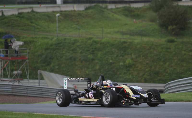 Meister holte seinen dreizehnten Saisonsieg Zwei Briten auf dem Siegerpodest Gerade erst ist ein turbulentes Rennwochenende des ATS Formel 3 Cup im Rahmen der DTM am Lausitzring zu Ende gegangen, schon blicken die Starter in der deutschen Formel 3 wieder auf den Sachsenring. Das kommende Rennwochenende wird nicht weniger spannend, denn Markus Pommer von Lotus könnte ein Rennwochenende vor Saisonende alles klarmachen und sich den Titel des Champions im ATS Formel 3 Cup 2014 holen. Seine Verfolger werden sicher noch einmal mit dem Messer zwischen den Zähnen kämpfen. Es bleibt abzuwarten, ob der Zweitplatzierte Nabil Jeffri vom Team Motopark dem Führenden noch gefährlich werden kann. Insgesamt gehen elf Starter ins Rennen auf dem 3,645 km langen Sachsenring im Rahmen des ADAC GT Masters. Neu dabei ist der Brasilianer Pipo Derani, der für ADM Motorsport aufs Podium will. ![]() Markus Pommer ist auf dem direkten Weg, sich die Krone aufsetzen zu dürfen. Denn nach sieben Rennwochenenden ist der Neckarsulmer vom Team Lotus der Spitzenreiter, der vielleicht an diesem Rennwochenende auf dem Sachsenring den Sack zumachen kann und sich Champion im ATS Formel 3 Cup nennen darf. Doch die Piloten hinter ihm geben nicht auf, allen voran der Malaysier Nabil Jeffri vom Team Motopark. Und auch der Drittplatzierte, der Niederländer Indy Dontje vom Team Lotus, und der Brite Sam MacLeod von Van Amersfoort Racing auf dem vierten Platz haben noch ein Wörtchen mitzureden, wenn es um den Titel des Champions im ATS Formel 3 Cup 2014 geht. Sollte Pommer allerdings seine Serie fortsetzen, werden seine Rivalen noch einmal alles geben müssen, um einen vorzeitigen Sieg verhindern zu können. ![]() Neu im Starterfeld ist Luís Felipe Derani, der 2010 bereits mit dem zehnten Rang in der Gesamtwertung eine Saison im ATS Formel 3 Cup beendete. Der Brasilianer kämpfte danach unter anderem in der britischen und europäischen Formel 3 und erreichte vergangenes Jahr den dritten Platz beim Macau Grand Prix of Formula 3. Am Wochenende geht er für den italienischen Rennstall ADM Motorsport an den Start. Der Kontakt entstand durch eine geplante Zusammenarbeit für das Zandvoort Masters. Derani folgt am Sachsenring einer Einladung von Teamchef Renato Melchioretto. „Ich freue mich, dass ich Renato bei der Entwicklung des Autos unterstützen darf. Mit meiner Erfahrung in der Formel 3 verstehe ich gut, was ein Bolide braucht“, weiß der 20-Jährige aus Sao Paulo. „Der Plan ist, schnell die Pace zu finden, um dann zu sehen, wo wir stehen. Ich hoffe, ich kann damit auch den anderen Fahrern im Team helfen.“ ![]() Der ATS Formel 3 Cup nahm am Freitagmorgen bei trockenem Wetter das freie Training mit elf Fahrern in Angriff. Markus Pommer (Lotus) hatte sich nach 21 gefahrenen Runden mit einer Zeit von 1:13,764 Minuten als schnellster Pilot im Feld erwiesen. Hinter ihm lagen Sam MacLeod (van Amersfoort Racing) und Weiron Tan (ebenfalls van Amersfoort Racing). Nabil Jeffri (Motopark), der stärkste Widersacher von Markus Pommer musste sich zunächst mit Rang vier zufrieden geben. Direkt hinter ihm lag der Niederländer und Dritte in der Meisterschaft Indy Dontje (Lotus). Luis-Felipe Derani (ADM Motorsport, der Neuling hatte sich auf Rang neun platziert. ![]() Für die Fahrer wurde es am Freitagnachmittag ernst, denn nun mussten sie ihre Startaufstellungen für Rennen 19 und 21 ausfahren. Die schnellste Runde ist ausschlaggebend für den Lauf am Samstagmittag und die zweitschnellste Runde zählt für das Rennen am Sonntagnachmittag. Zunächst einmal kam es immer wieder die Positionsveränderungen. Nach vier Runden hatte sich Markus Pommer mit einer Zeit von 1:13,772 Sekunden an die Spitze gefahren, gefolgt von Weiron Tan und Nabil Jeffri. Bei noch 24 Minuten zu fahrender Zeit wurde das Qualifying mit der roten Flagge unterbrochen, da Weiron Tan von der Strecke abgekommen war und erst einmal geborgen werden musste. Nachdem dies geschehen war, ging die Jagd auf die Pole von neuem los. ![]() Bei Halbzeit des Zeittrainings waren sie in die Box gekommen und zogen neue Reifen auf. Zu dieser Zeit lag Markus Pommer immer noch auf Platz eins, diesmal gefolt von Sam MacLeod und Nabil Jeffri. Indy Dontje nahm nur Rang sechs ein. Nachdem das Qualifying abgewunken wurde hatte sich Markus Pommer nach 16 Runden mit einer Zeit von 1:13,772 Minuten die Pole für das erste Rennen am Samstag geholt. Hinter ihm werden Sam MacLeod und Nabil Jeffri starten. Indy Dontje nimmt das Rennen aus der dritten Startreihe aus auf. Die zweitschnellste Zeit hatte der Brite Sam MacLeod nach vierzehn Runden mit einer Zeit von 1:14,053 Minuten gefahren und wird daher am Sonntag von der Pole starten. Startplatz zwei und drei gingen an Markus Pommer und Nabil Jeffri. Indy Dontje hatte sich um einen Startplatz verbessert. ![]() Markus Pommer (Lotus): "Ich hatte keine freie Runde, das war ärgerlich. Ich musste durchs Gras und hätte beinahe einen Unfall gebaut. Das hätte alles besser gehen müssen. Für morgen denke ich, wenn der Start passt, müsste alles klappen." Sam MacLeod (van Amersfoort Racing): "Es ist schade, dass wir nicht die schnellsten sind, aber es war ein solider Lauf. Im Sektor zwei und drei waren wir wohl die schnellsten und jetzt müssen wir noch schauen, warum wir das nicht auch im Sektor 1 waren und wo wir die Zehntel auf Markus verloren haben." Nabil Jeffri (Motopark): "Wirklich glücklich bin ich nicht, weil ich einfach zu weit von Markus weg bin. Wir müssen uns jetzt mal das Setup anschauen, weil ich genauso schnell sein kann wie er. Morgen sehen wir weiter." ![]() Als die Fahrer am Samstagmittag ihren 19. Lauf unter die Räder nehmen wollten, wurde zuvor eine Unwetterwarnung herausgegeben. Als sie alle in der Startaufstellung standen fing es heftigst an zu regnen. Der Start wurde dann um zehn Minuten verschoben und auch als wet-race erklärt. Die Rennleitung entschied dann auch das man hinter dem Safety Car aus Sicherheitsgründen starte