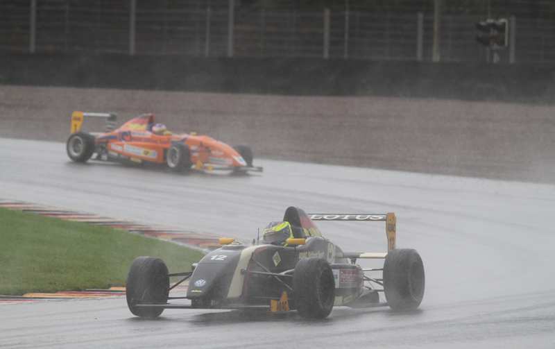 Start-Ziel-Sieg für Maximilian Günther Meister beendet die Saison auf Platz vier Vom 19. bis 21. September fanden die Läufe 19 bis 21 im Rahmen des ADAC Mastersweekend für die Piloten der ADAC Formel Masters statt. Es ist das vorletzte Rennwochenende in dieser Saison. Gefahren wird auf dem Sachsenring. Der Traditionskurs von 3,645 Kilometer in der Nähe von Hohenstein-Ernstthal gelegen ist mit seinen Höhenunterschieden und der Berg- und Talbahn, bestehend aus vierzehn anspruchsvollen Kurven eine enorme Herausforderung für die Piloten. Seit dem Debütjahr der ADAC Formelschule ist dieser Kurs fester Bestandteil des Rennkalenders und bietet Jahr für Jahr spannende und abwechselungsreiche Rennen. Mikkel Jensen (Neuhauser Racing) reist mit 272 Punkte als Meisterschaftsführender in den Osten, gefolgt von Maximilian Günther (Team Mücke Motorsport) mit 201 und Marvin dienst (ebenfalls Mücke Motorsprt) mit 171 Punkten. ![]() Für die 15 Piloten der ADAC Formel Masters stand das freie Taining bei trockenem Wetter am Freitagvormittag auf dem Zeitplan. Immer wieder kam es zu Positionsveränderungen. In der Anfangsphase war Luis-Enrique Breuer (Lotus) von der Strecke abgekommen. Zu dieser Zeit befand er sich auf Platz acht. Bei noch sechseinhalb Minuten zu fahrender Zeit lag Mikkel Jensen (Neuhauser Racing) mit 21 absolvierten Runden und einer Zeit von 1:23,144 Minuten auf Platz eins, gefolgt von Tim Zimmermann (Neuhauser Racing Team) und Maximilian Günther (ADAC Berlin Brandenburg). Der amtierende Vize-Meister lieferte sich zu Beginn des Trainings ein enges Duell mit Titelrivale Mikkel Jensen um die Spitze, fiel in den letzten Runden allerdings zurück. Als noch zwei Minuten auf der Uhr standen, wurde diese Sitzung mit der roten Flagge unterbrochen, da Luis-Enrique Breuer abermals von der Strecke abgekommen war und sich im Kies eingegraben hatte. ![]() Zu dieser Zeit war der Schwede Joel Eriksson (Lotus) der schnellste Mann im Feld und zwar mit 21 absolvierten Runden und einer Zeit von 1:23,129 Minuten. Hinter ihm lagen Mikkel Jensen und Tim Zimmermann. Maximilian Günther befand sich auf Rang vier. Die Piloten kamen nun in die Box zurück. Das Training wurde dann auch nicht wieder aufgenommen. Igor Walilko (JBR Motorsport & Engineering) schloss das Training hinter Dennis Marschall (Lotus) als Sechster ab. Der polnische Serienneuling bestreitet auf dem Sachsenring das Heimspiel für sein Team JBR Motorsport & Engineering. Schiller Motorsport-Youngster Fabian Schiller (Schiller Motorsport) und der Schweizer Ralph Boschung (Lotus) komplettierten die besten Acht, die um weniger als eine Sekunde auseinander lagen. Ernst wurde es für die Fahrer am Freitagnachmittag, denn da stand das Qualifying an, in dem sie ihre Startaufstellungen für den 19. und 20. Lauf ausfahren. Als erste gingen Luis-Enrique Breuer, Dennis Marschall, Joel Eriksson, Ralph Boschung, David Kolkmann und Igor Walilko hinaus auf die Strecke. Die anderen warteten noch eine Weile. Nach vier gefahrenen Runden hatte sich Dennis Marschall an die Spitze gefahren, gefolgt von Joel Eriksson und Ralph Boschung. Tim Zimmermann war nach zwei Runden hereingekommen. Er hatte aber noch keine Zeit gesetzt. An der Spitze hatte sich unterdessen Joel Eriksson geschoben. Igor Walilko lag auf Platz drei. Kim Luis Schramm war zu dieser Zeit von der Strecke gesegelt. Er befand sich auf Platz zehn. Zwischenzeitlich hatte Tim Zimmermann die Fahrt wieder aufgenommen. Bei dem Tabellenführer wurde immer noch eifrig am Auto geschraubt. ![]() Nach seinem Ausritt war Kim-Luis Schramm zu seiner Crew in die Box zurückgekehrt. Es standen noch 17 Minuten auf der Uhr. Zu dieser Zeit wurde dann auch Mikkel Jensen auf die Reise geschickt. Wenig später hatte sich dieser auf Rang vier gefahren. Joel Eriksson führte weiterhin mit einer Zeit von 1:23,303 Minuten, gefolgt von Dennis Marschall und Tim Zimmermann. Maximilian Günther war nur auf Rang neun unterwegs. Nach der Reparatur konnte man Kim Luis Schramm für die letzten siebeneinhalb Minuten wieder auf die Reise schicken. Auf Platz sechs liegend war Igor Walilko nach dreizehn Runden in die Box gekommen. In der Schlußphase hatte Mikkel Jensen einiges zugelegt und sorgte mit einer Zeit von 1:23,012 Minuten zunächst für klare Verhältnisse. Dennis Marschall hatte sich ganz leise auf Platz zwei geschoben und verdrängte damit Joel Eriksson auf Platz drei. ![]() Maximilian Günther hatte sich zu dieser Zeit auf Platz sieben gefahren. In den letzten drei Minuten hatte sich Joel Eriksson wieder auf Platz zwei geschoben. Nico Menzel auf Rang neun war unterdessen etwas auf Abwegen unterwegs. Er konnte aber wieder allein auf die Strecke zurückkommen. Für den ersten Lauf holte sich Mikkel Jensen nach zwölf Runden mit einer Zeit von 1:23,012 Minuten die Pole-Position, gefolgt von Joel Eriksson und Dennis Marschall. Tim Zimmermann und Maximilian Günther werden das Rennen aus der zweiten bzw. vierten Startreihe aus aufnehmen. Auch die zweitschnellste Zeit ging an Mikkel Jensen, damit hatte er sich eine Doppel-Pole gesichert. Joel Eriksson, Dennis Marschall, Tim Zimmermann und Maximilian Günther hatten ihre Startplätze zwei, drei, vier und acht behaupten können und nehmen auch das zweite Rennen von dort aus auf. ![]() Mikkel Jensen (Neuhauser Racing), Pole Rennen 1 und 2: "Diese beiden Pole Positions sind ein perfekter Start ins Wochenende. Trotzdem verlief das Qualifying für mich nicht ganz nach Plan. Ich musste beinahe die Hälfte der Zeit an der Box warten, weil noch an meinem Auto gearbeitet wurde. Als ich meine Konkurrenten auf der Strecke fahren sah, wurde ich schon etwas nervös. Mein Team hat aber perfekte Arbeit geleistet, um mich noch rechtzeitig auf die Strecke zu bringen. An diesem Wochenende steht für mich der Titelgewinn im Fokus. Das bedeutet aber nicht, dass ich in den Rennen zurückstecken werde. Ich möchte auf jeden Fall beide Rennen von der Pole Position gewinnen und so vorzeitig die Me