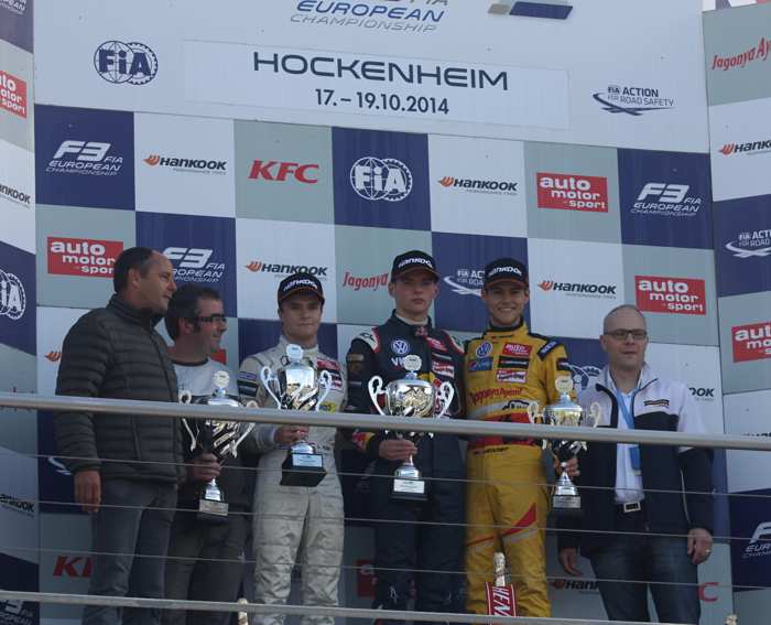 Dritter Saisonsieg für Lucas Auer Tom Blomqvist wird Vizemeister Im Rahmen der DTM geht die FIA Formel-3-Europameisterschaft vom 17. bis 19. Oktober in die finale Runde des Jahres 2014. Auf dem 4,574 Kilometer langen Hockenheimring Baden-Württemberg wird sowohl der Kampf um den Vize-Europameistertitel als auch das Ranking in der Teamwertung entschieden. Max Verstappen (Van Amersfoort Racing) gegen Tom Blomqvist (Jagonya Ayam with Carlin) heißt das Duell um den Vize-Titel, in das sich auch Lucas Auer (kfzteile24 Mücke Motorsport) noch einmischen kann. Im Klassement der besten Teams hat das Prema Powerteam die Nase vorne, gefolgt von Jagonya Ayam with Carlin. Den vorzeitigen Titel des FIA Formel-3-Europameisters sicherte sich bereits der 18-jährige Lotus-Formel-1-Junior Esteban Ocon (Prema Powerteam). Am vergangenen Wochenende in Imola baute er seine Führung soweit aus, dass ihm bereits drei Rennen vor Saisonschluss keiner mehr den Titel streitig machen kann. Auch in der Rookie-Wertung ist der Franzose nicht mehr von Platz eins zu verdrängen. Für das Finale hat sich mit Stefano Coletti (Eurointernational) ein Gaststarter angemeldet, der aktuelle GP2-Pilot gibt sein Comeback in der Formel 3. Der 25-jährige Monegasse, der 2008 bereits seinen ersten Einsatz in der Formel 3 absolvierte, tritt in Hockenheim für die italienische Mannschaft Eurointernational an. ![]() Gerade einmal drei Punkte trennen Toro-Rosso-Schützling Max Verstappen und Tom Blomqvist nach 30 Saisonrennen der FIA Formel-3-Europameisterschaft. Beide Nachwuchspiloten haben in Imola eine Woche vor dem Finale je ein Rennen für sich entscheiden können. Insgesamt durfte der 20 Jahre alte Tom Blomqvist in diesem Jahr fünf Siege feiern, der drei Jahre jüngere Max Verstappen jubelte mit neun Siegen sogar vier Mal mehr von der ersten Stufe des Siegerpodestes. Mit einem Rückstand von 63 Zählern auf Max Verstappen ist auch der 20-jährige Lucas Auer rein mathematisch noch im Rennen um den zweiten Tabellenplatz, da insgesamt noch 75 Punkte zu holen sind. Tom Blomqvist sorgte mit seinen Erfolgen auch dafür, dass sein Team Jagonya Ayam with Carlin aktuell den zweiten Rang in der Teamwertung belegt. Zusammen mit seinen Teamkollegen Antonio Giovinazzi und Sean Gelael sammelte er bisher 609 Punkte, was momentan Rang zwei bedeutet. Mit 716 Punkten ist vor dem Finale nur das Prema Powerteam besser notiert. Das Team bestreitet mit den Fahrern Esteban Ocon, Antonio Fuoco, Nicholas Latifi und Dennis van de Laar die Saison. Beide Mannschaften haben noch Chancen auf den Gewinn der Teamwertung, wobei die italienische Equipe Prema Powerteam einen großen Vorsprung von 107 Punkten auf das britische Team Jagonya Ayam with Carlin hat. In der Teamwertung werden maximal zwei Piloten einer jeden Mannschaft vor Beginn einer Veranstaltung nominiert und nur diese beiden Fahrer werden für die Teamwertung gewertet. Bei bester Platzierung in allen drei Rennen können also maximal noch 143 Punkte geholt werden. ![]() Max Verstappen (Van Amersfoort Racing): "Ich habe in Hockenheim noch ein wichtiges Ziel: Ich möchte unbedingt Zweiter der Gesamtwertung der FIA Formel-3-Eurpameisterschaft werden. Dafür werde ich genauso alles geben, wie ich es vorher im Titelkampf getan habe. In Imola war unser Speed sehr gut und ich hoffe, dass wir auch in Hockenheim schnell sein werden, sodass ich alle drei Rennen für mich entscheiden kann." Am Freitagmittag begaben ich die Pilotinnen und Piloten hinaus zum freien Training. Dieses wurde in zwei Sitzungen zu jeweils 40 Minuten mit einer Pause von fünf Minuten abgehalten. Nach fünf Minuten wurde dieses bereits mit der roten Flagge unterbrochen. Zu dieser Zeit führte Lucas Auer mit einer Zeit von 1:43,803 Minuten, gefolgt von Antonio Fuoco und Felix Rosenqvist. Die Fahrer kamen zunächst einmal wieder in die Box gefahren und warteten ab. Um 12.26 Uhr wurde das Training wieder frei gegeben. Runde um Runde kam es zu Positionsveränderungen. Esteban Ocon der vorzeitige Meister hatte sich auf Platz sechs geschoben. Bei noch 18 Minuten verbleibender Zeit waren die Zeiten schneller geworden. Zwischenzeitlich hatte Gustavo Menezes das Zepter übernommen. Er wurde dann aber in den letzen vier Minuten von Lucas Auer von Rang eins verbannt. Dieser hatte für alle anderen eine Zeit von 1:33,206 Minuten gefahren. Bei noch einer Minute und elf Sekunden zu fahrender Zeit wurde zum zweiten Mal mit der roten Flaage unterbrochen. Man nahm dieses Training dann nicht mehr weiter auf. Die Zeit von Lucas Auer hatte niemand toppen können. Hinter ihm lagen Felix Rosenqvist und Esteban Ocon. Max Vestappen befand sich auf Platz fünf. Tatiana Calderon, die einzige Dame im Feld musste sich mit Rang 19 zufrieden geben. ![]() Nach einer Pause von fünf Minuten ging die Sache wieder von vorne los. Nach fünf gefahrenen Runden hatte sich Lucas Auer wieder auf Platz eins geschoben. Es dauerte aber nicht lange und er wurde von Roy Nissany von dieser Position verdrängt. Er hatte eine Zeit von 1:34,714 Minuten gefahren. Hier konnte Esteban Ocon noch eins drauf setzen und nahm mit 1:33,806 Minuten Platz eins ein. Immer wieder kam es zu Positionsverschiebungen. Auch diese Sitzung musste mit der roten Flagge unterbrochen werden. Es standen noch sechzehneinhalb Minuten auf der Uhr. Zu dieser Zeit hatte Felix Serralles mit einer Zeit von 1:33,396 Minuten das Zepter übernommen, gefolgt von Nick Cassidy und Max Verstappen. Lucas Auer und Esteban Ocon befanden sich auf den Plätzen fünf und sechs. Jetzt kamen die Fahrer erneut in die Box und warteten dass das Training wieder frei gegeben wird. Bei noch elf Minuten zu fahrender Zeit wurde die Sitzung wieder aufgenommen. Am Ende hatte sich Lucas Auer mit einer Zeit von 1:32,861 Minuten als schnellster Mann im Feld erwiesen, gefolgt von Esteban Ocon und Max Verstappen. Tatiana Calderon hatte sich auf Rang zwölf gefahren. ![]() Ernst wurde es dann am Freitagnachmittag, denn nun stand das Qualifying in